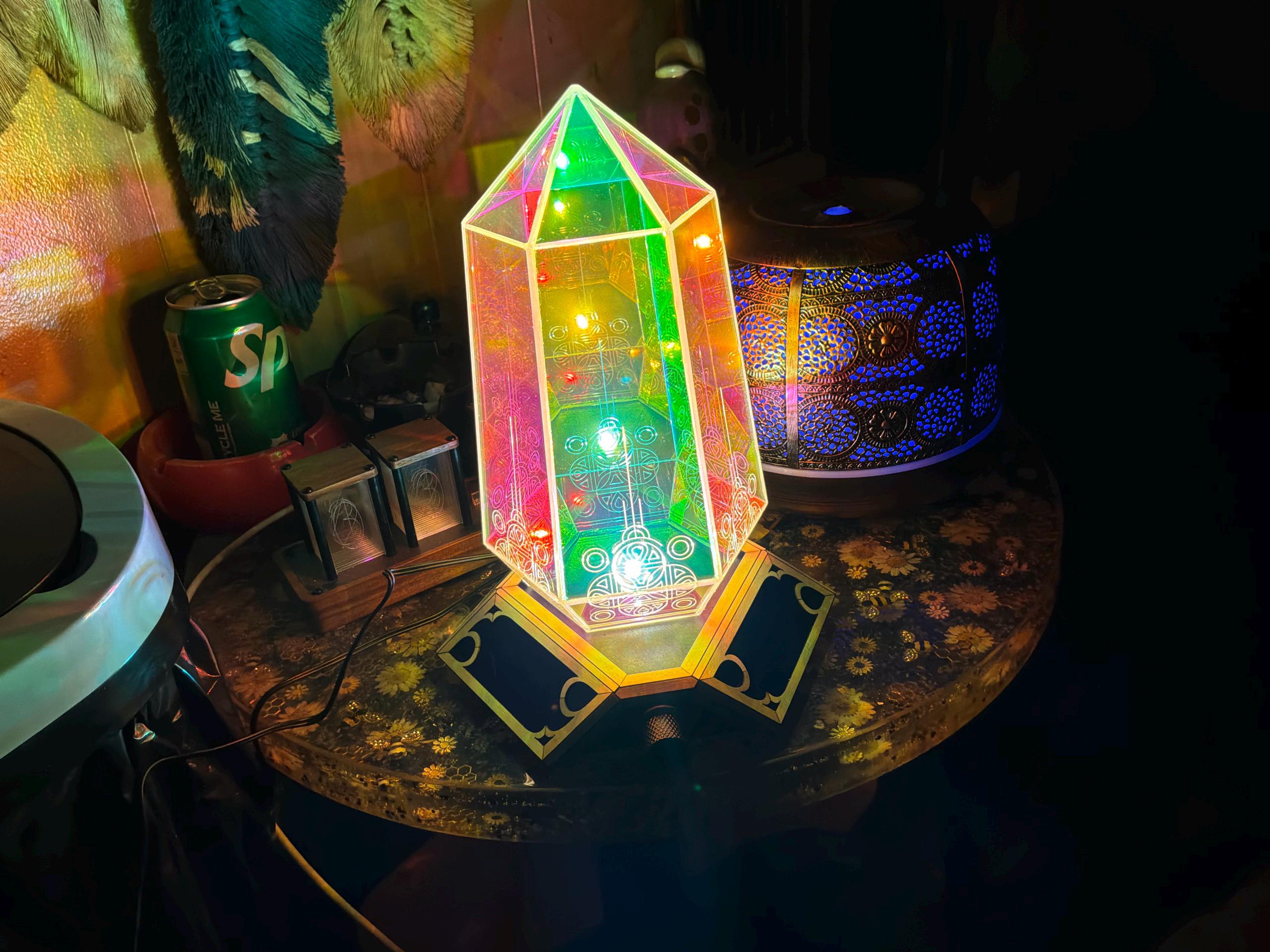 Introducing the Inspired Spire table lamp, a stunning addition to your home decor. Handcrafted with precision and care, this unique desk lamp creates a beautiful prism of light, casting a mesmerizing crystal-inspired design onto your walls and ceiling. With its intricate details and expert craftsmanship, the Inspired Spire night light is sure to become a conversation starter in any room. Whether you're looking to add some mood lighting to your bedroom or create a relaxing atmosphere in your living space, this shadow lamp is the perfect choice. Experience the magic of light and shadow with the Inspired Spire.