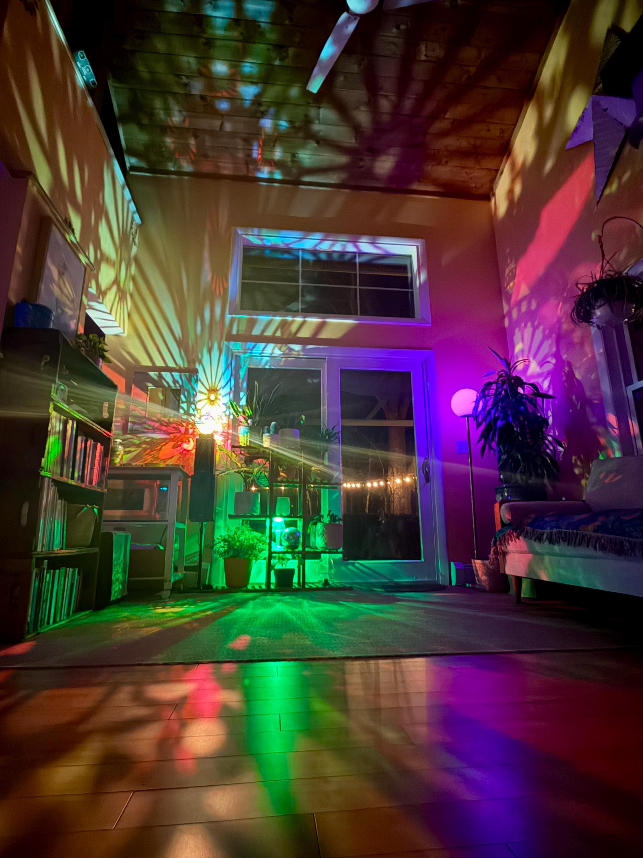 Shadows are most crisp closest to the lamp, and the effect extends throughout the room.
