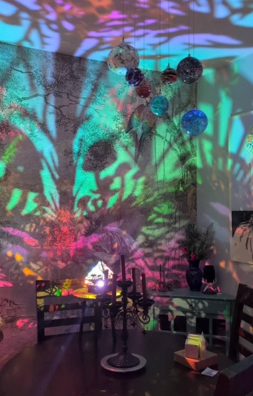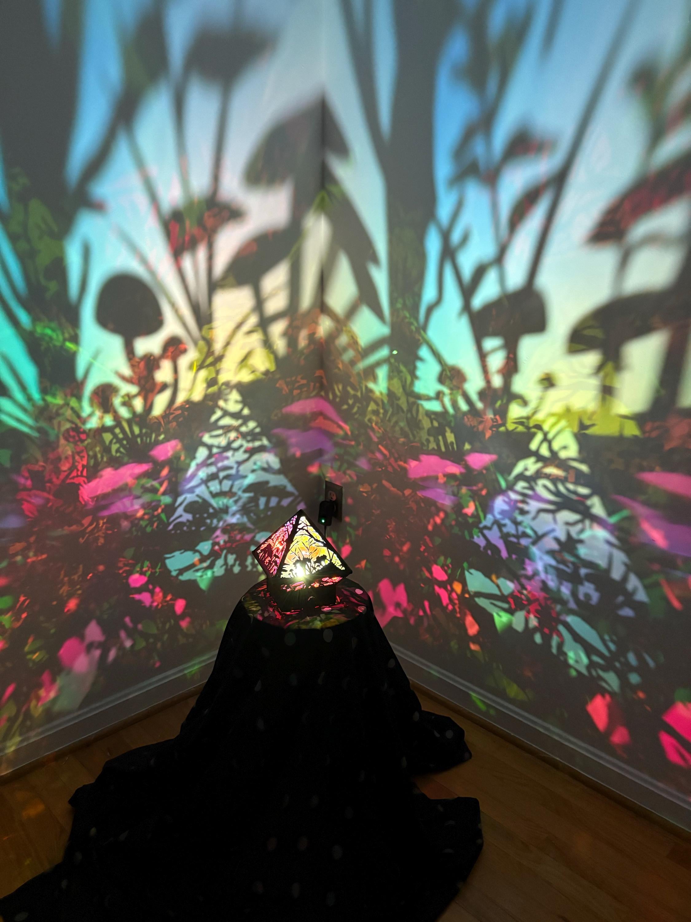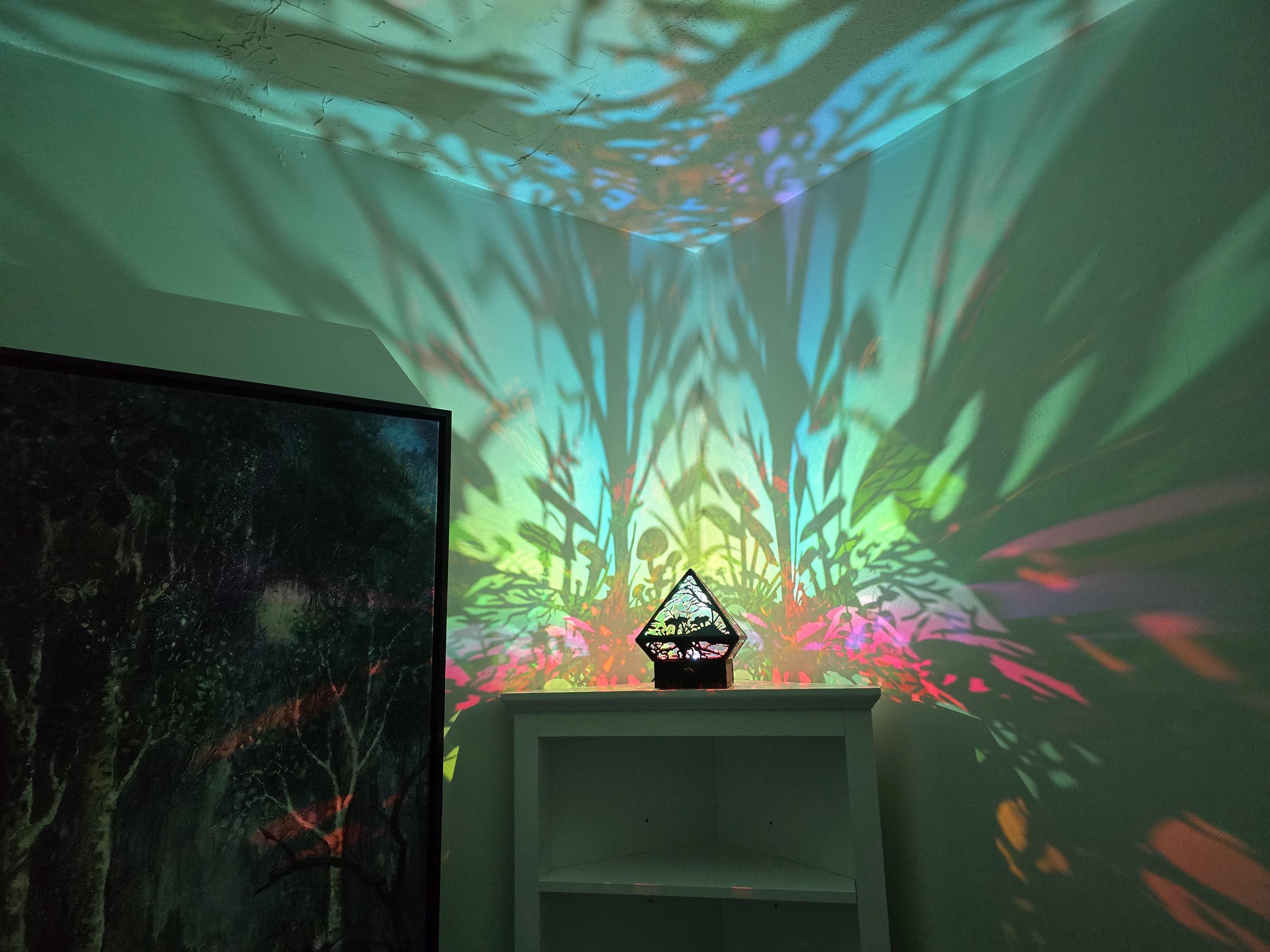 The inside of the lamp becomes an infinity-prism when turned on, and the inside of your room becomes a forest wonderland <3